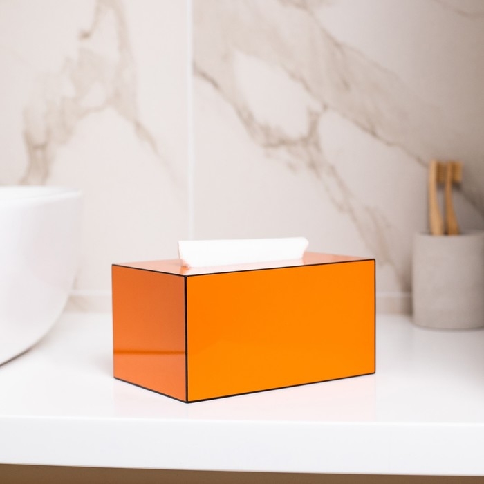 Шкатулка - диспенсер из акрила, цвет оранжевый 10 х 18 х 12 см (салфетница)