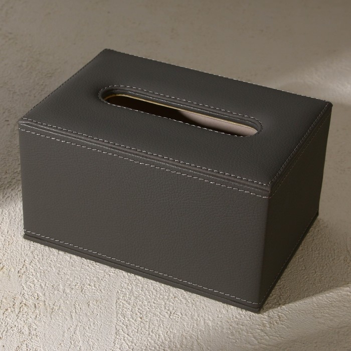 Шкатулка - диспенсер из искусственной кожи, цвет серый 10 х 18 х 10 см (салфетница)