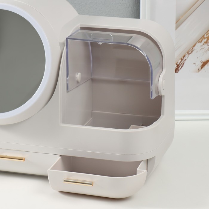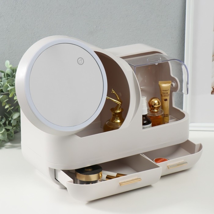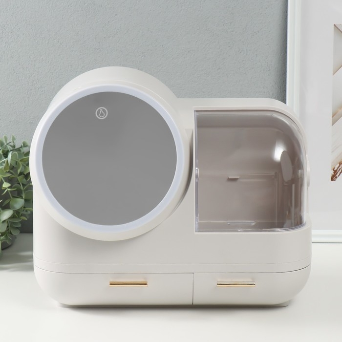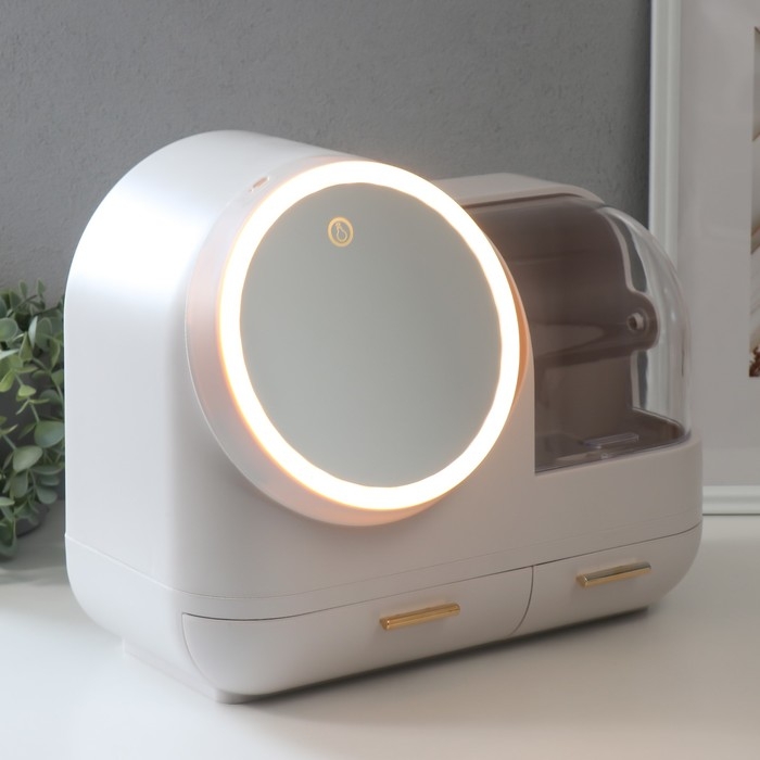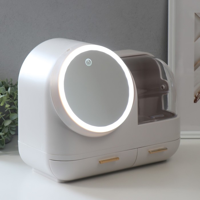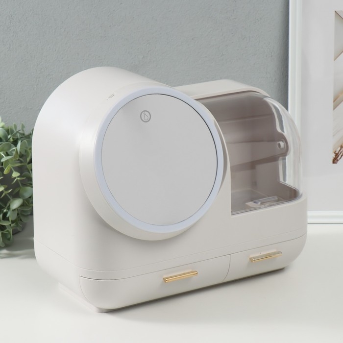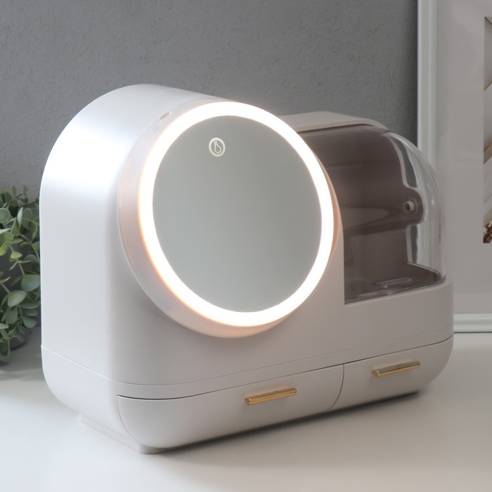 Шкатулка для косметики пластик, зеркало с подсветкой "Белоснежная" 37,5х22х31 см
