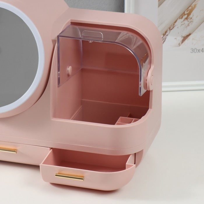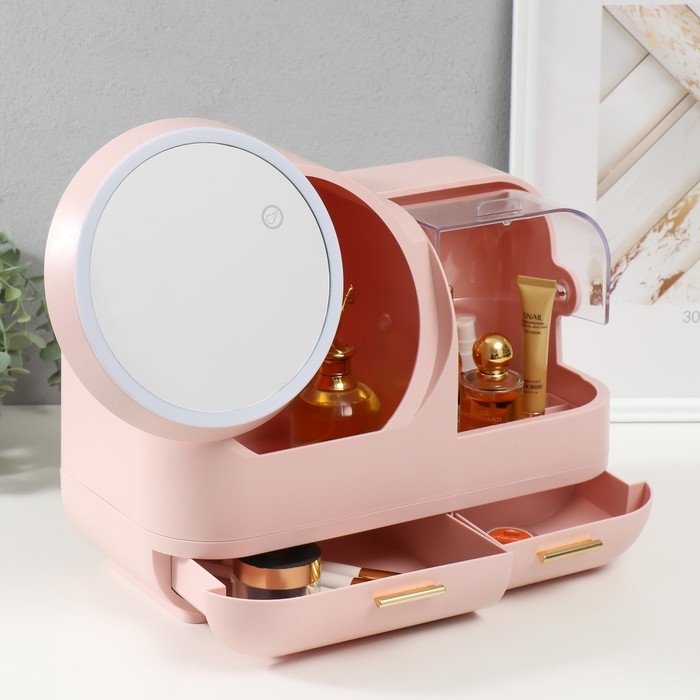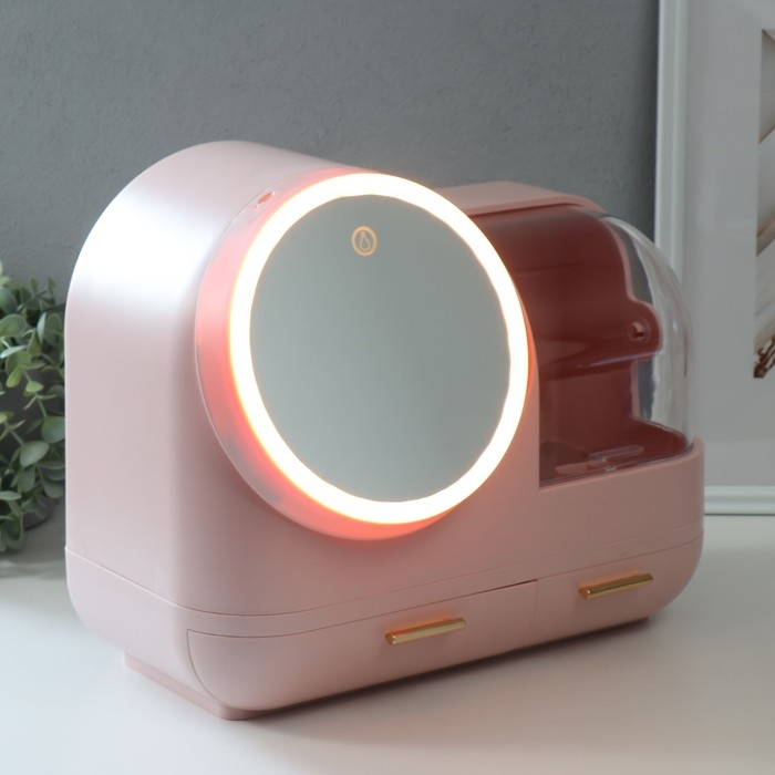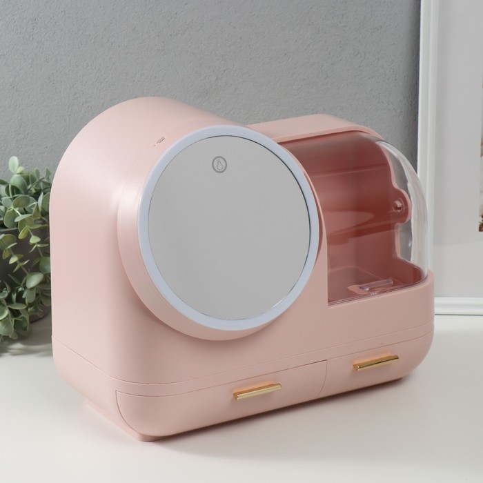 Шкатулка для косметики пластик, зеркало с подсветкой "Светло-розовая" 37,5х22х31 см