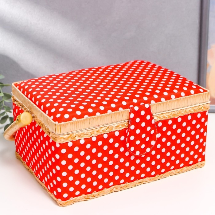 Шкатулка для рукоделия "Белый горох на красном" 13х17,5х24 см