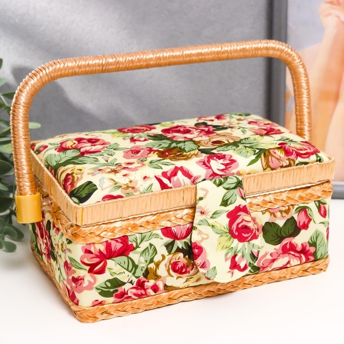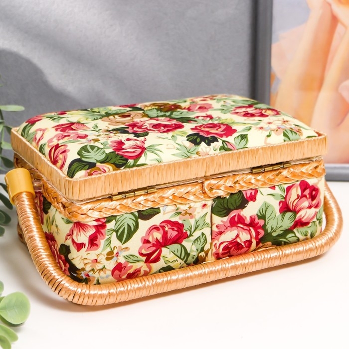 Шкатулка для рукоделия "Розовые бутоны" 10х13х19,5 см