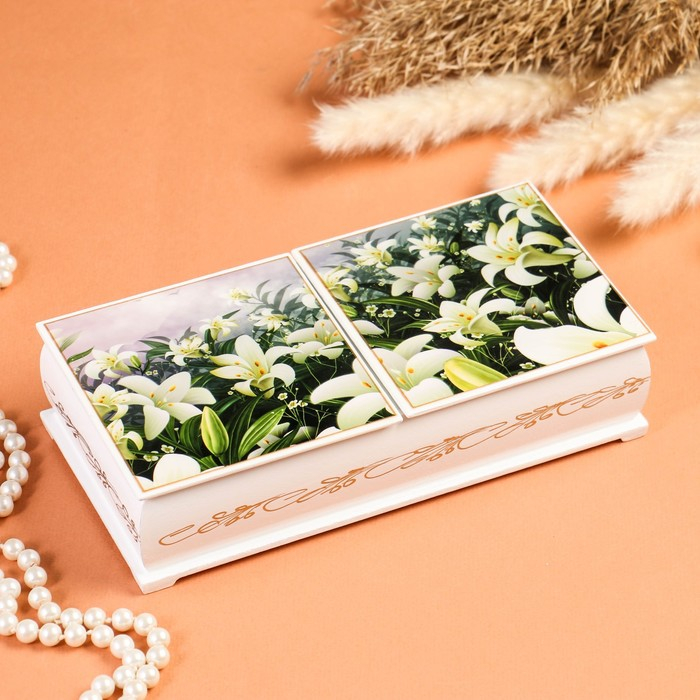 Шкатулка «Орхидеи с розами», 10×14 см, лаковая миниатюра