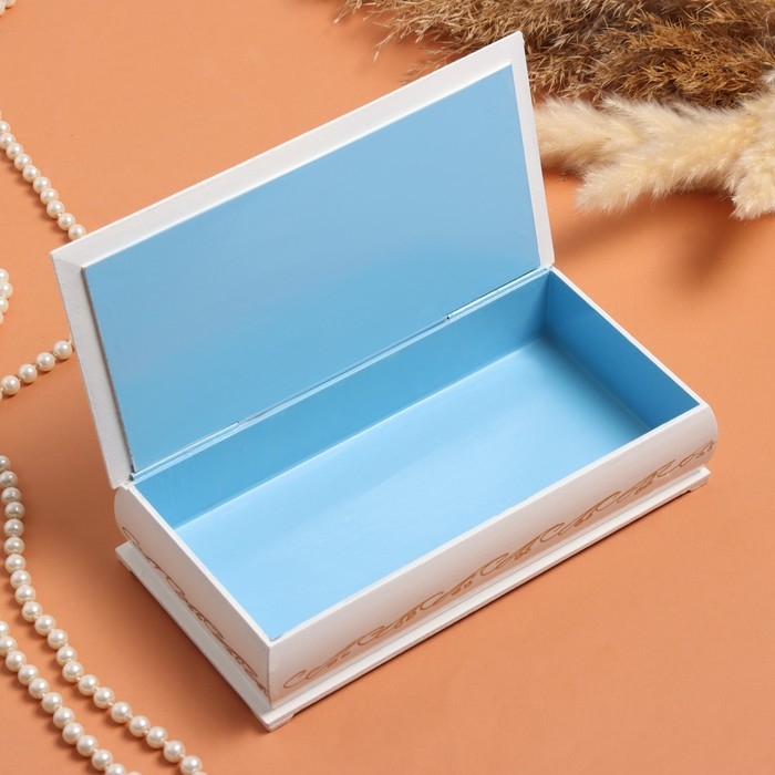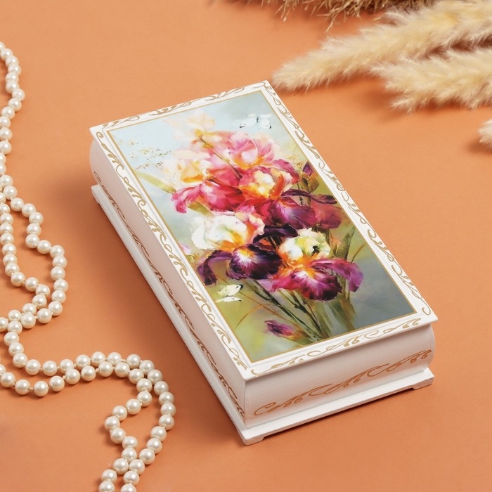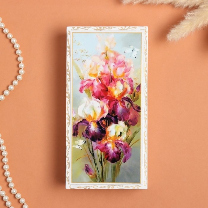 Шкатулка «Ирисы и бабочка», белая, 11 × 22 см, лаковая миниатюра