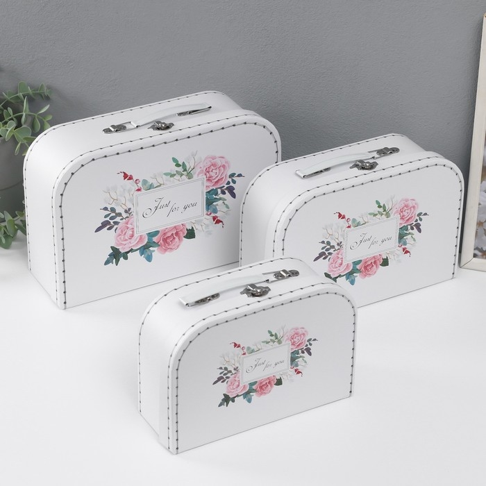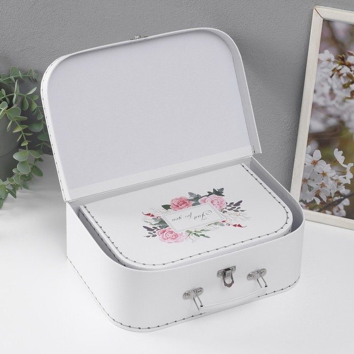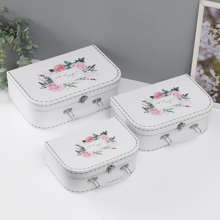 Шкатулка картон сундучок "Цветочный букет" набор 3 шт 29,5х19х10 22х15х8,5 25,5х17х9 см