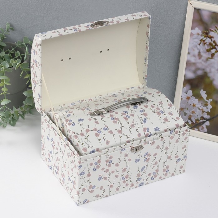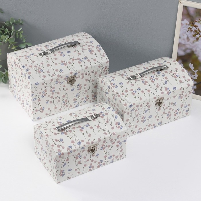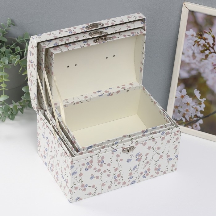 Шкатулка картон сундучок "Нежные цветы" набор 3 шт 26х18х16,5 24х16х14,5 22х14х12,7 см