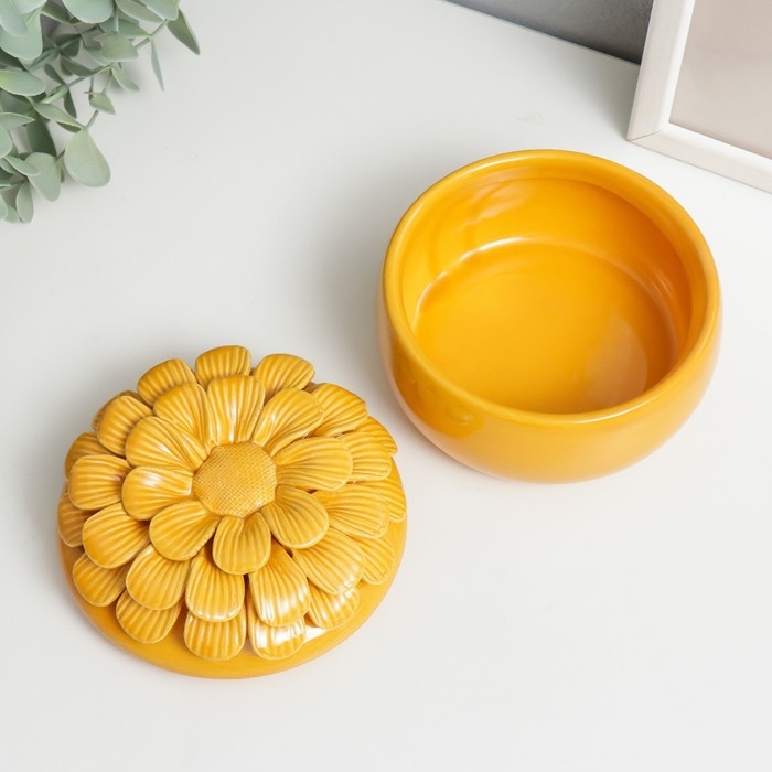Шкатулка керамика "Пышный цветок" горчица 9х12х12 см