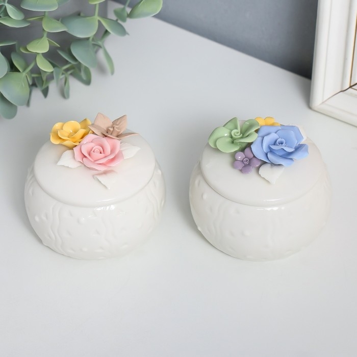 Шкатулка керамика "Розы с лепестками" МИКС 7,5х7,5х7,5 см