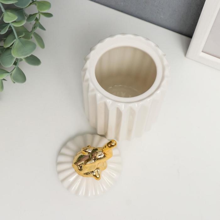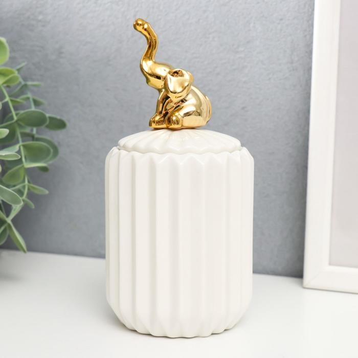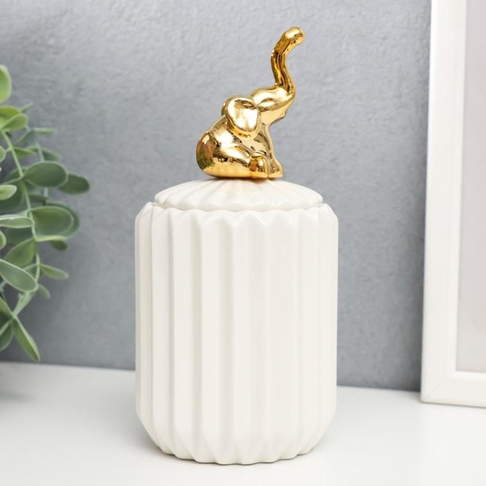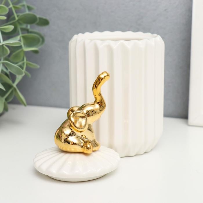 Шкатулка керамика "Золотой слонёнок" белая, гофре 16х7х7 см