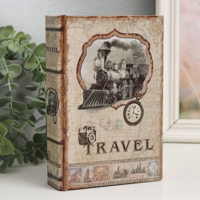 Шкатулка-книга дерево кожзам "Ретро поезд" 4х12х18 см
