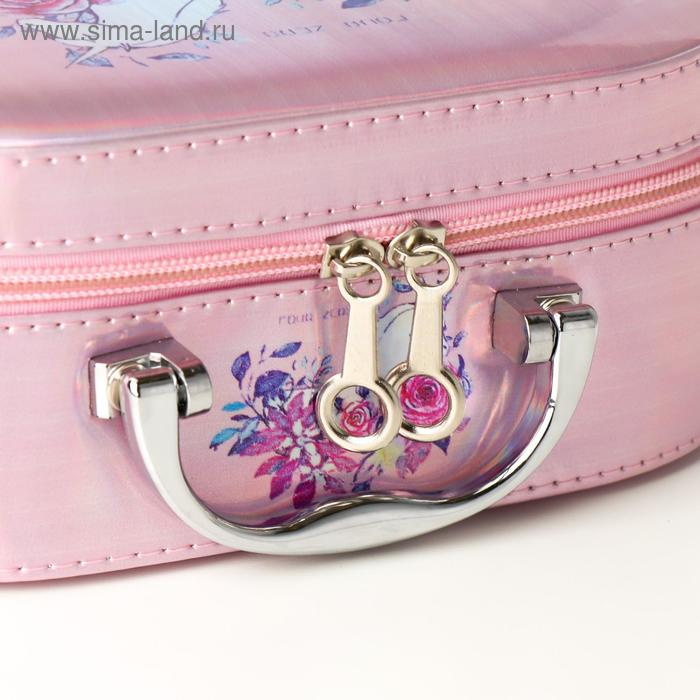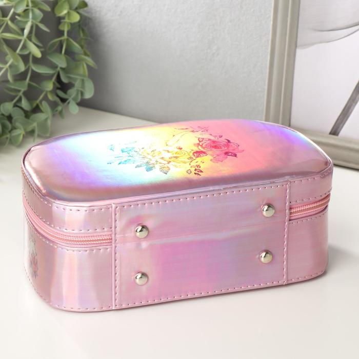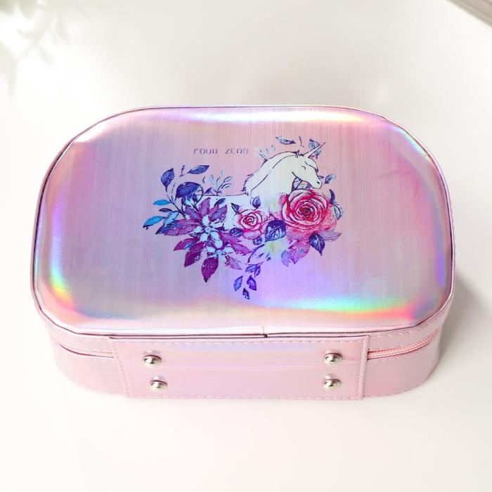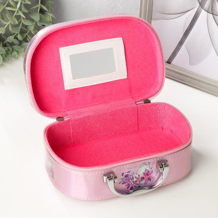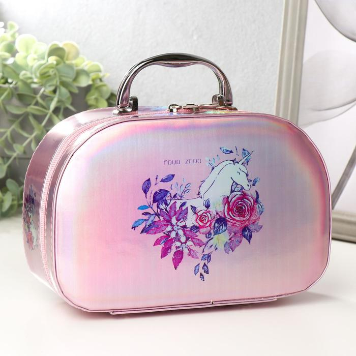 Шкатулка кожзам для косметики "Единорог в цветах" перламутр 8,5х15х22,5 см