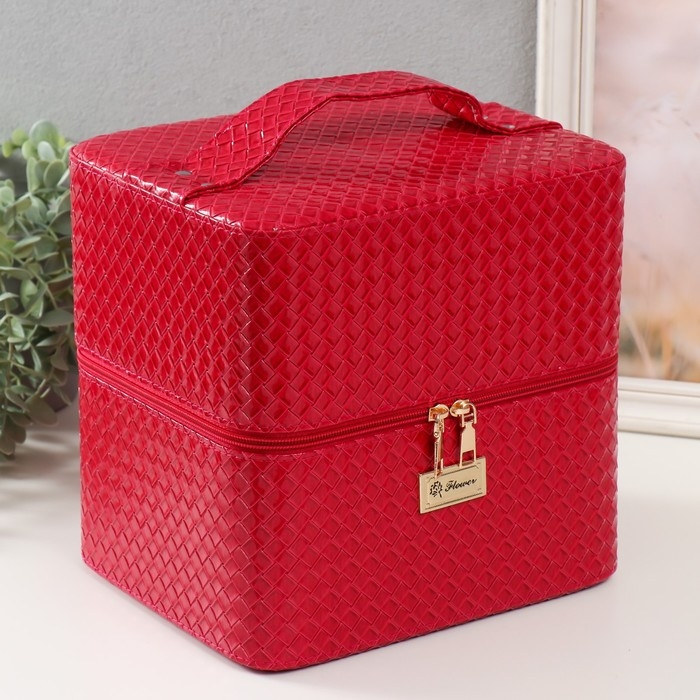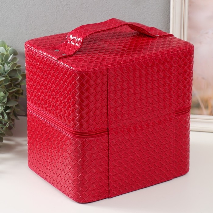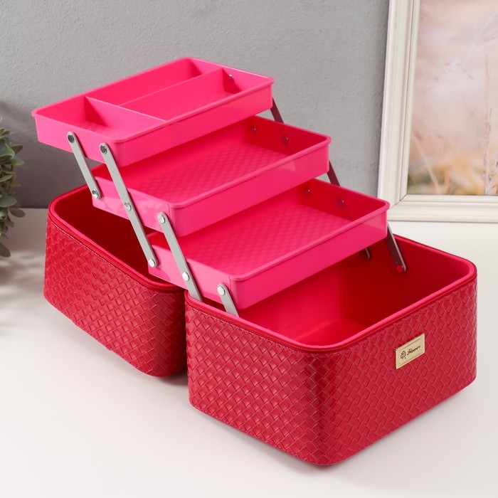 Шкатулка кожзам для косметики "Ромбы. Этажи" фуксия 24,5х20,5х27 см