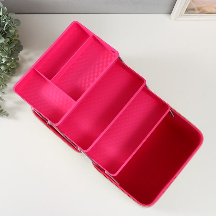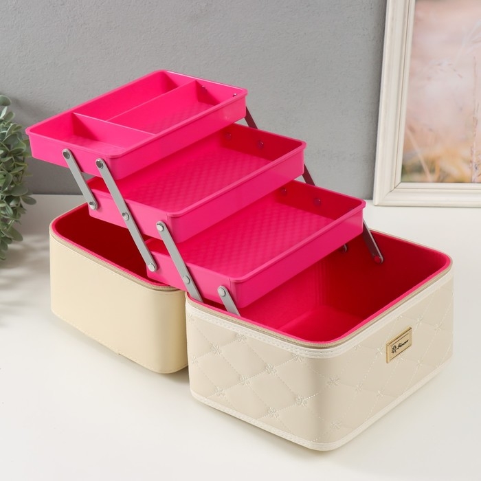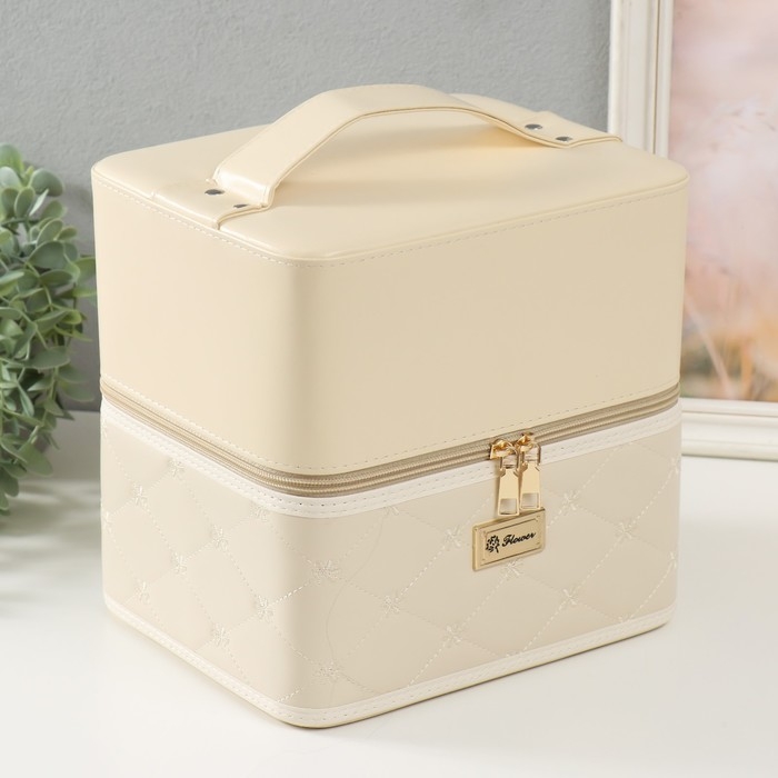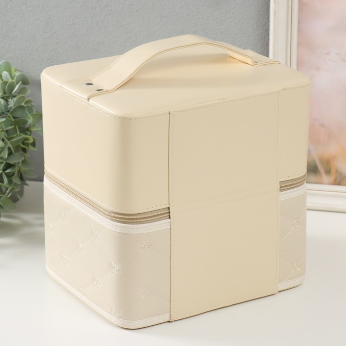 Шкатулка кожзам для косметики "Ромбы и цветы. Этажи" молочная 24,5х20,5х27 см