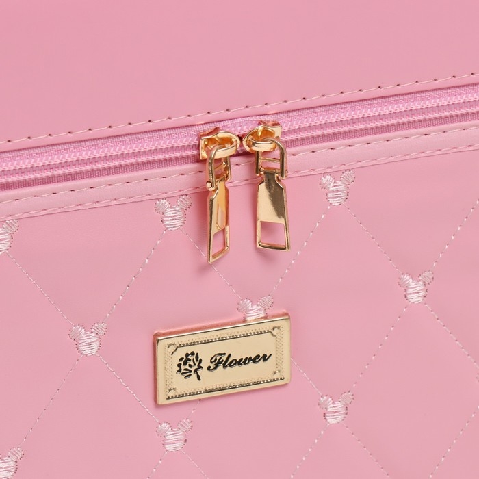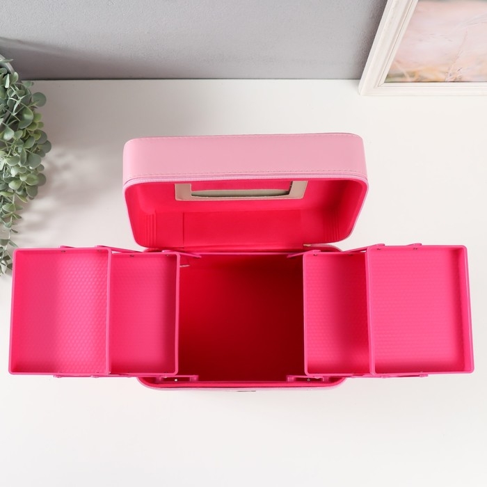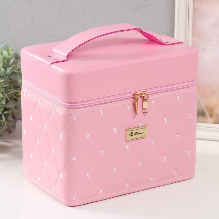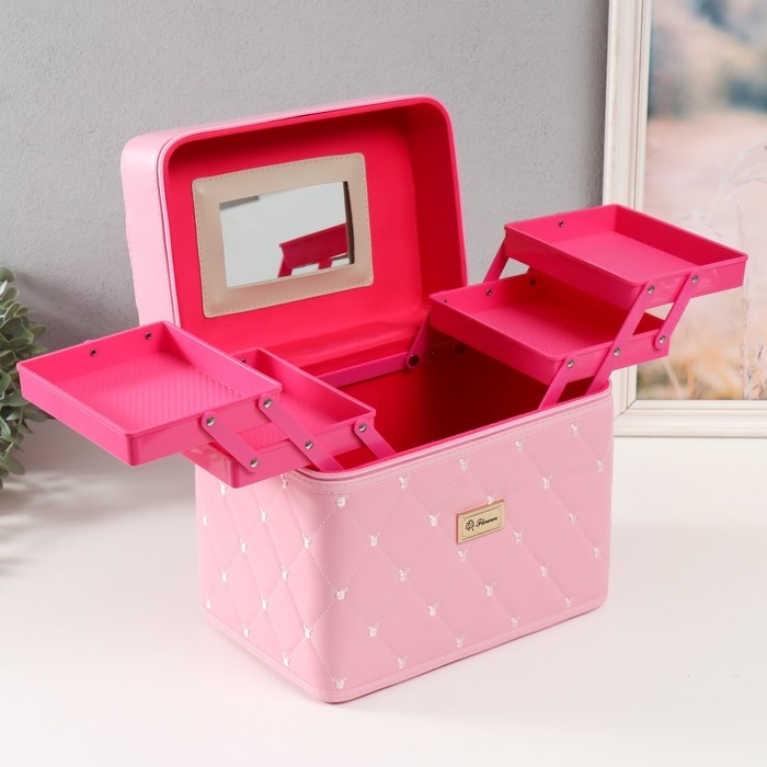 Шкатулка кожзам для косметики "Ромбы и мишки. Этажи" розовая 24,5х20,5х27 см