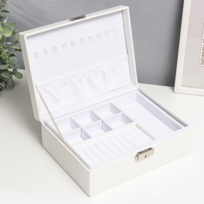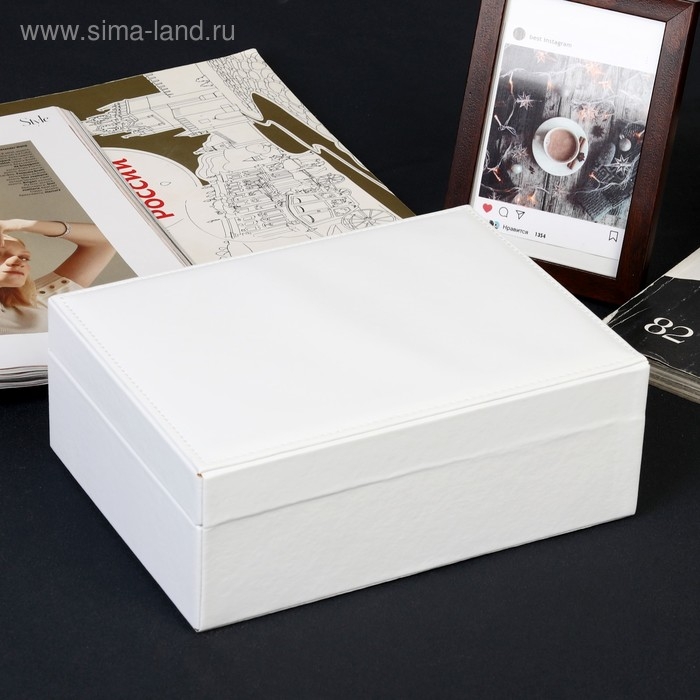 Шкатулка кожзам для украшений "Белая матовая" 8,7х23х17,5 см