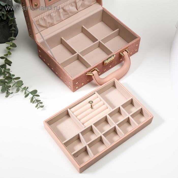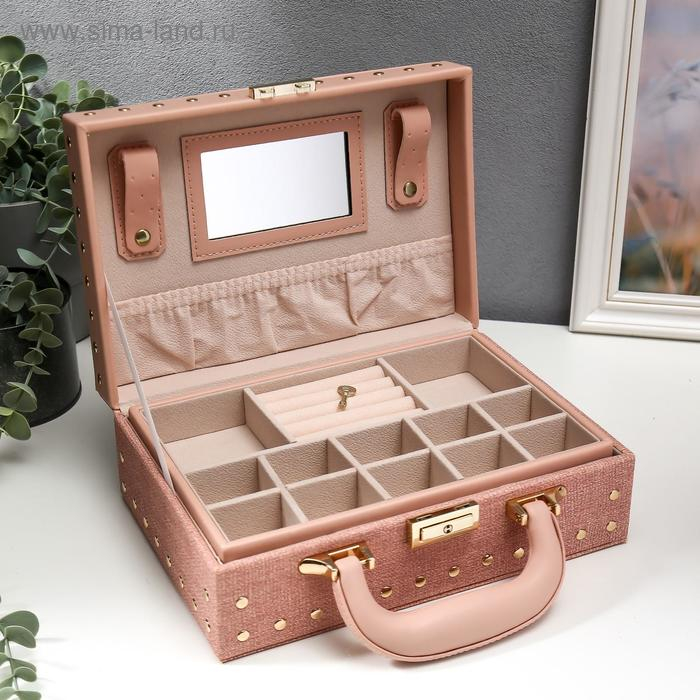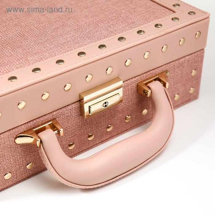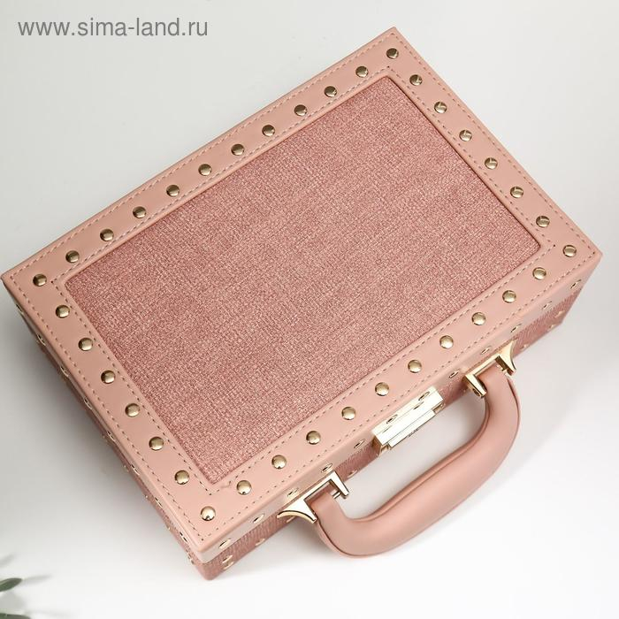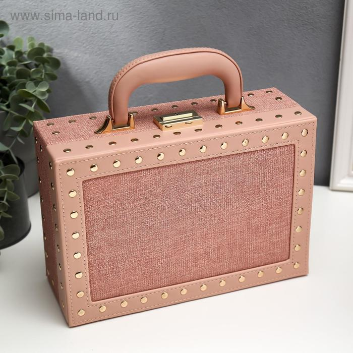 Шкатулка кожзам для украшений чемодан "С заклёпками" розовый беж 9,5х25х17,5 см