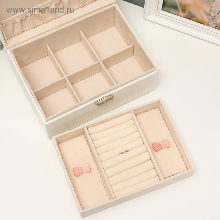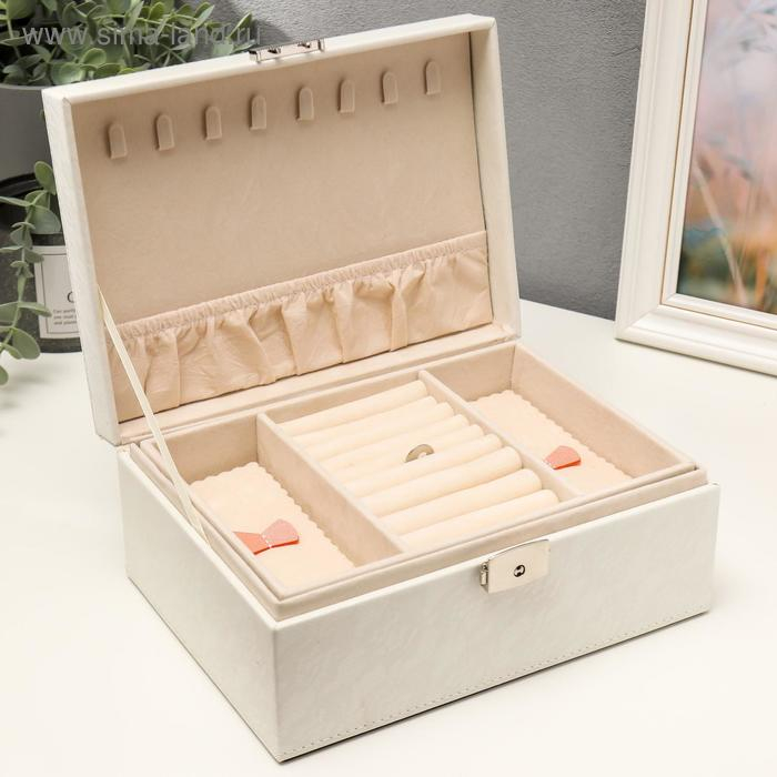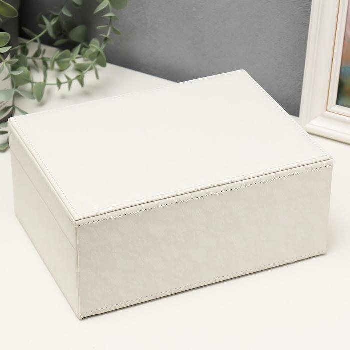 Шкатулка кожзам для украшений "Цветочное кружево" белая 9,5х16х22 см