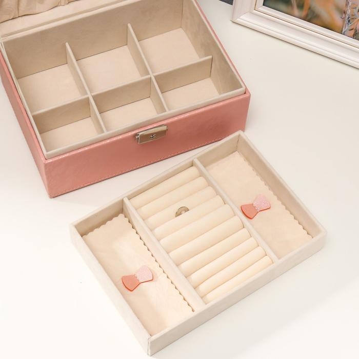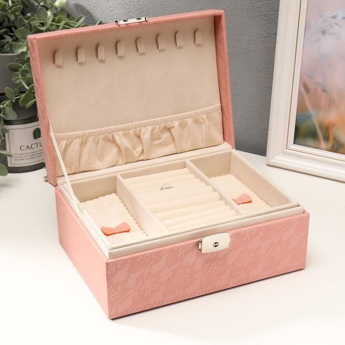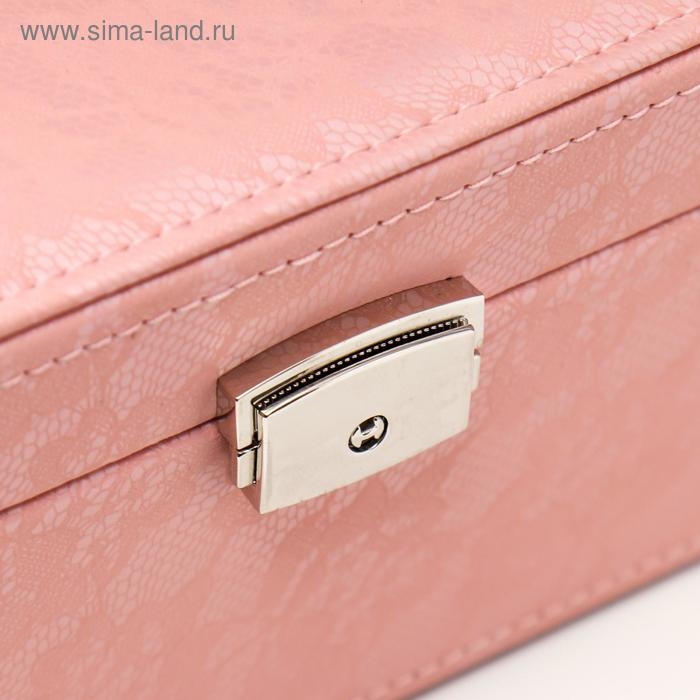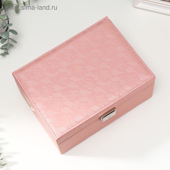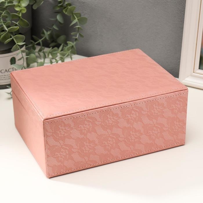Шкатулка кожзам для украшений "Цветочное кружево" розовая 9,5х16х22 см