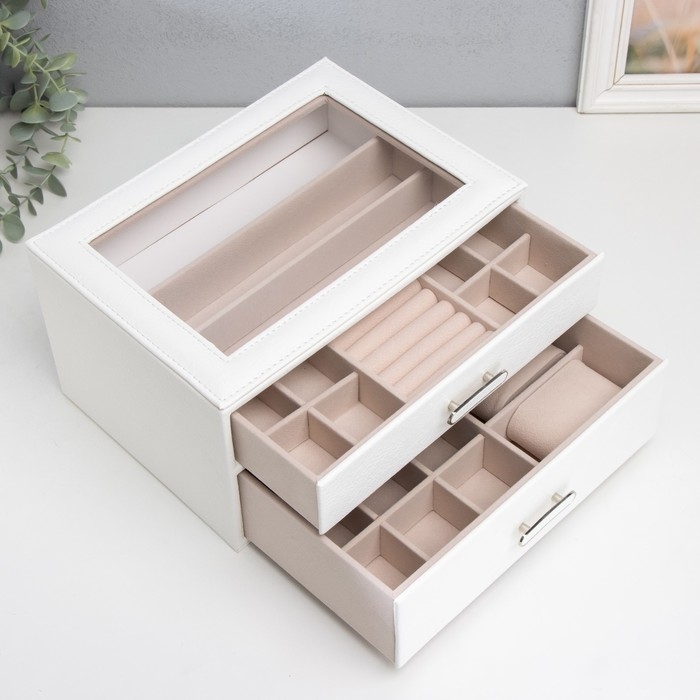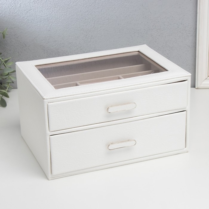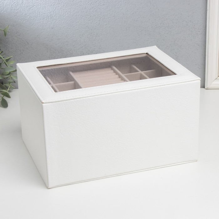 Шкатулка кожзам для украшений "Эльба. Два яруса" белая 25х18х14 см