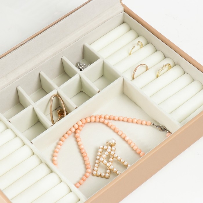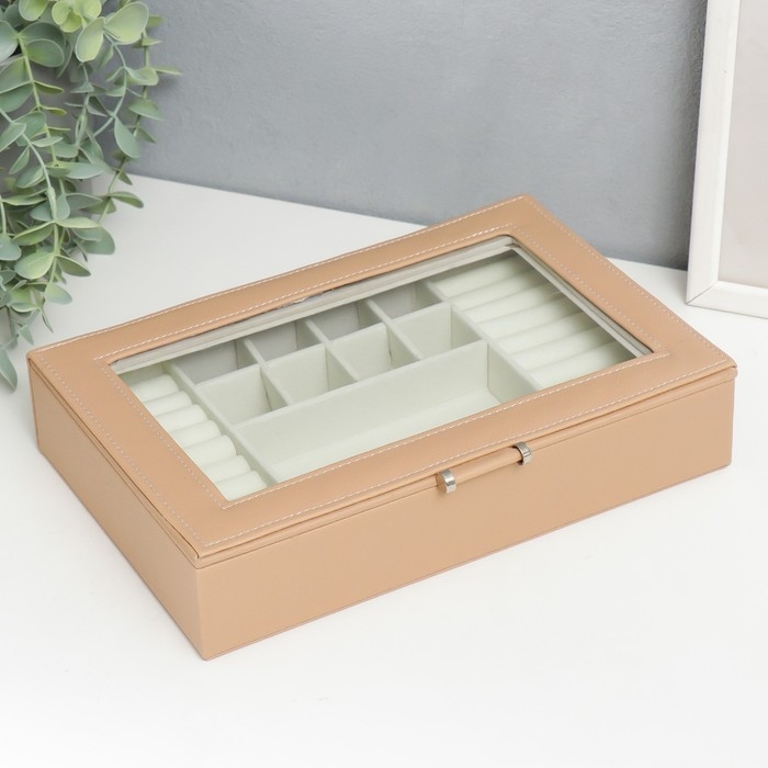 Шкатулка кожзам для украшений "Хэмптонс" бежевая 5,5х27х18 см