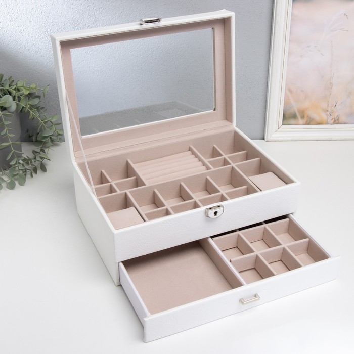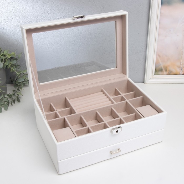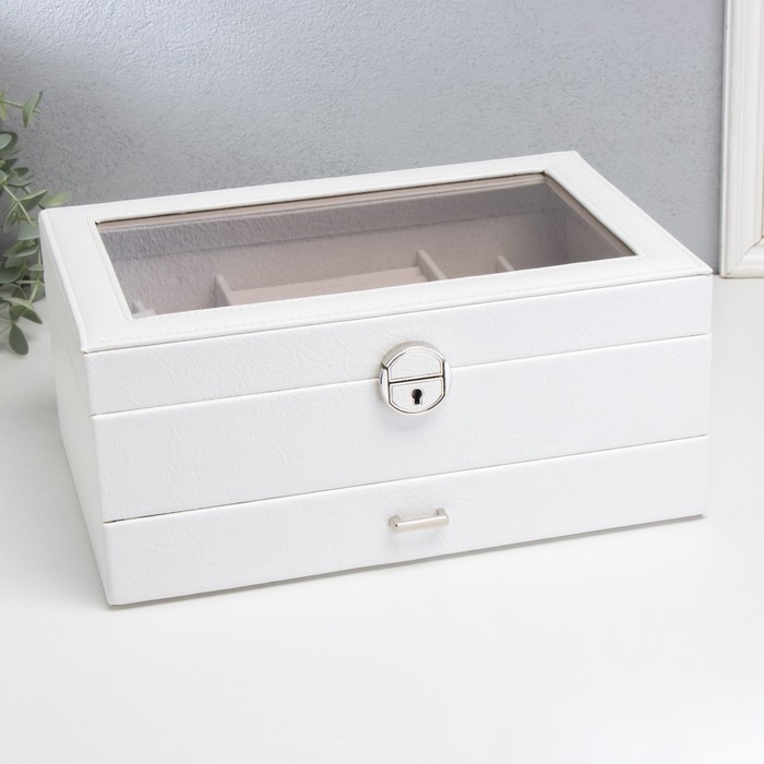Шкатулка кожзам для украшений "Кабрина" белая 30,5х20х13,5 см