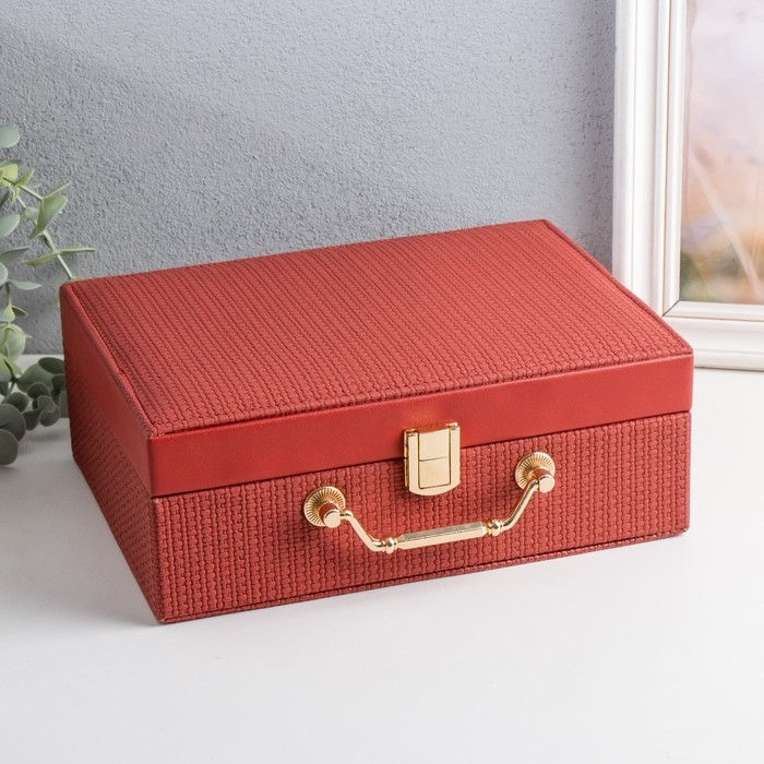Шкатулка кожзам для украшений "Кейс. Текстура" бордовая 24х17,5х9,5 см