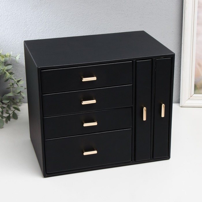 Шкатулка кожзам для украшений "Комод с золотистыми ручками" черная 16,3х18х22,5 см