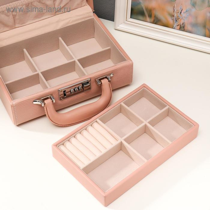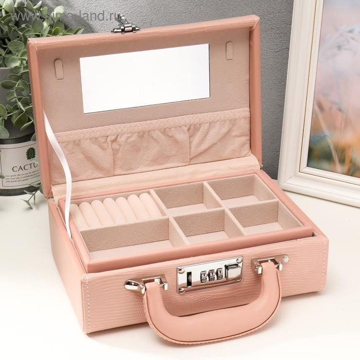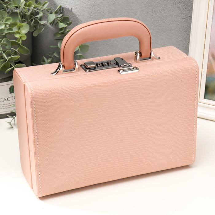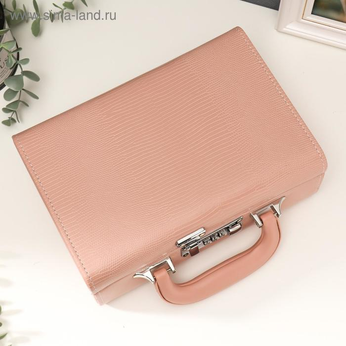 Шкатулка кожзам для украшений "Кожа змеи" нежно-розовая чемодан 9,5х16,5х24