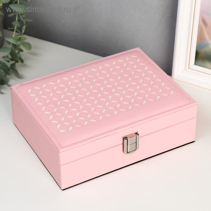 Шкатулка кожзам для украшений "Крестики" розовая 7х24х17.5см