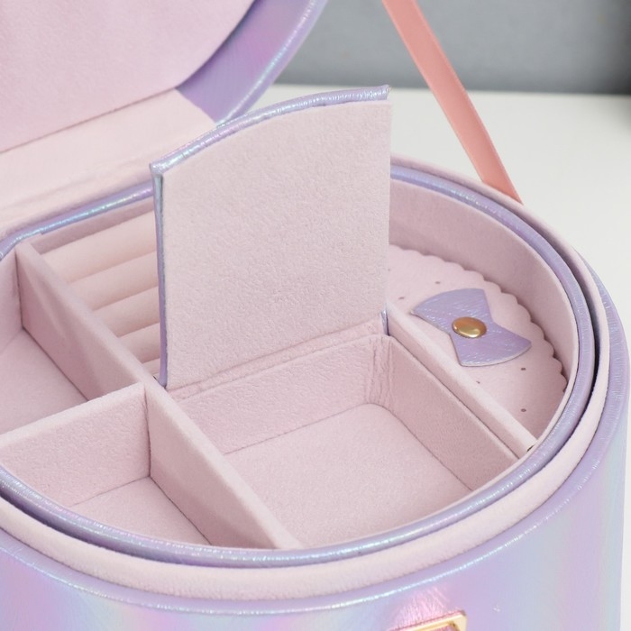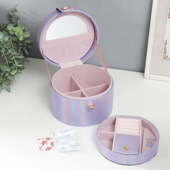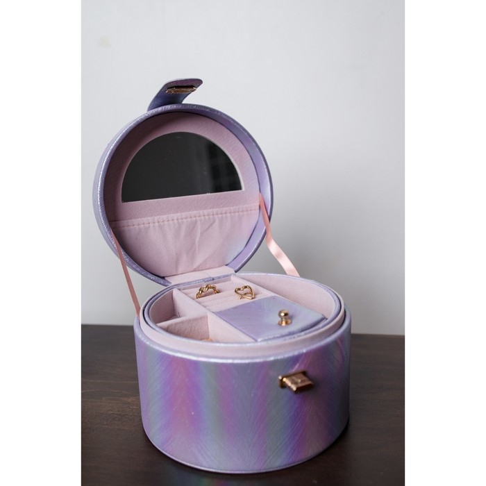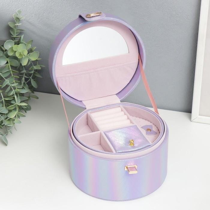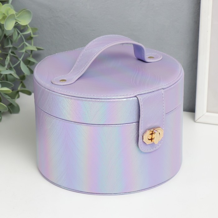 Шкатулка кожзам для украшений круглая "Переливы сирень" 12х17,5х17 см