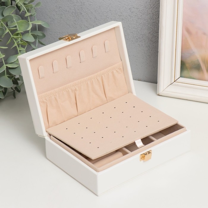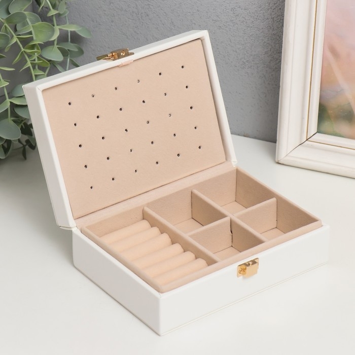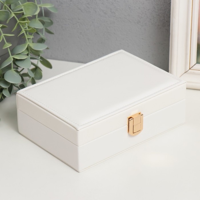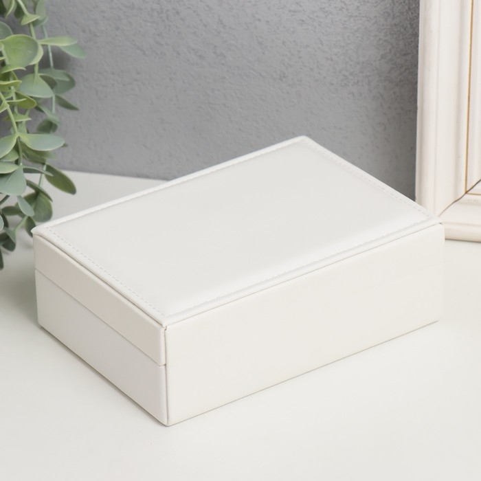 Шкатулка кожзам для украшений "Матовая гладь. Прямоугольная" белая 16х11,5х5,5 см