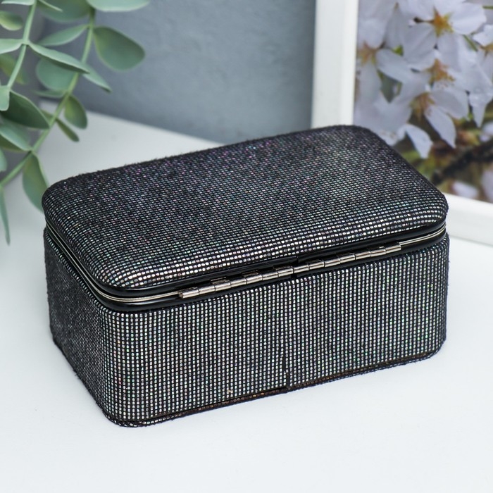 Шкатулка кожзам для украшений "Мелкие квадратики. Чёрное серебро" 6х7х12 см