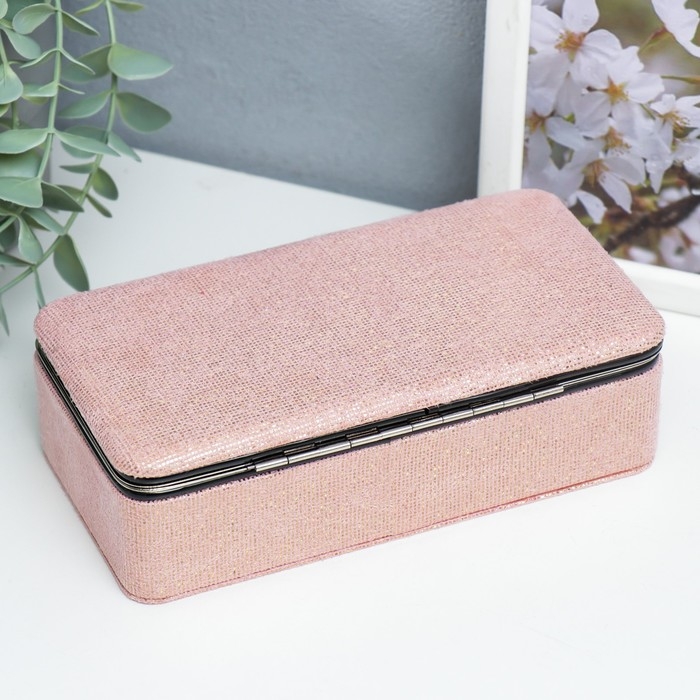 Шкатулка кожзам для украшений "Мелкие квадратики. Розовый" 6х9,8х18,5 см