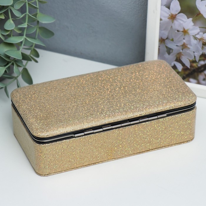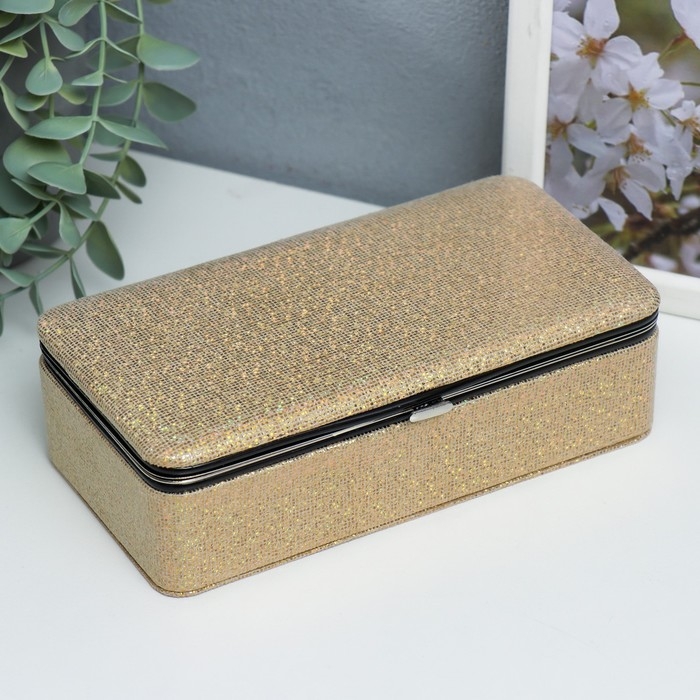 Шкатулка кожзам для украшений "Мелкие квадратики. Золото" 6х9,8х18,5 см