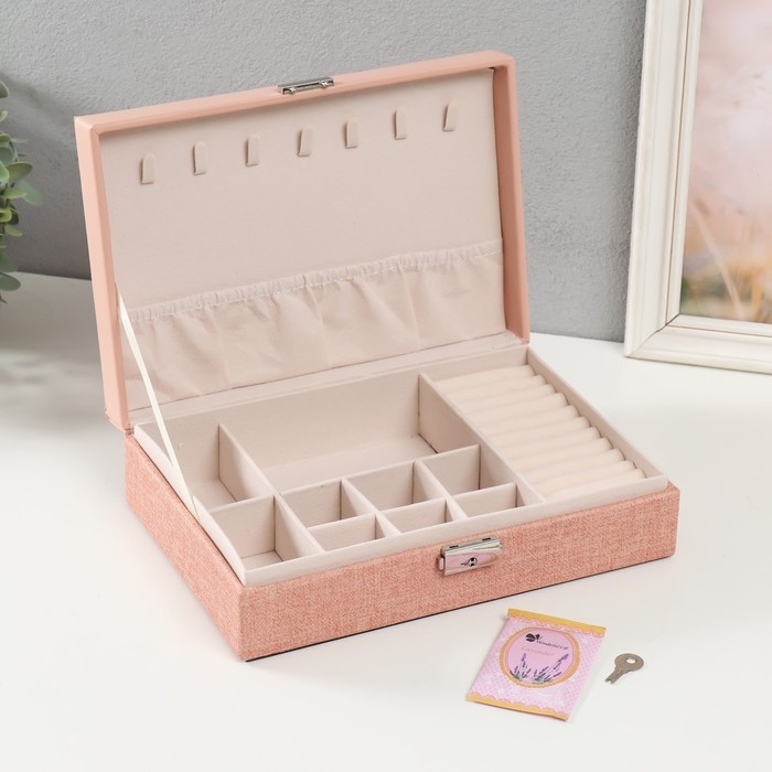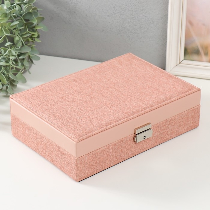 Шкатулка кожзам для украшений "Розовая" комбинированная 26,7х18,5х7,5 см
