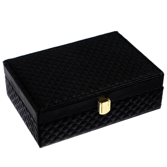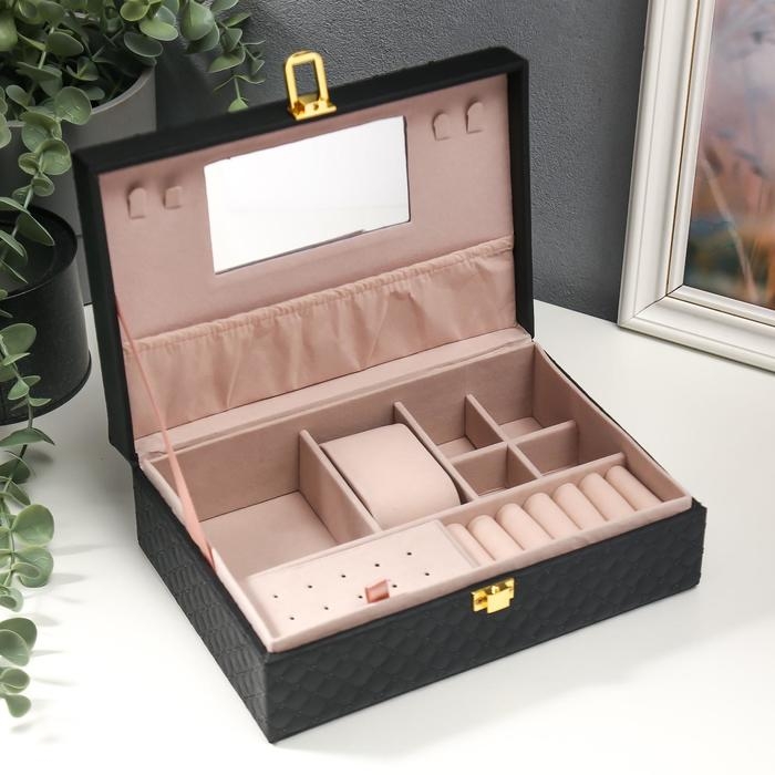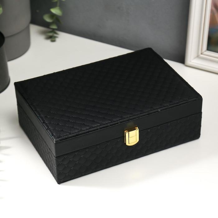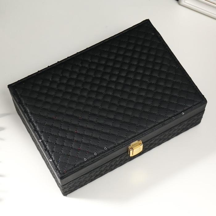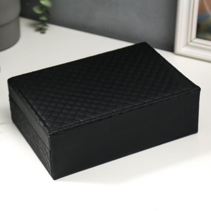 Шкатулка кожзам для украшений "С пайетками" чёрная 7,5х22х15 см