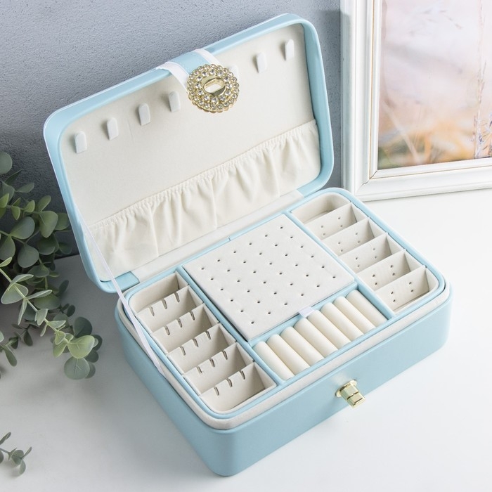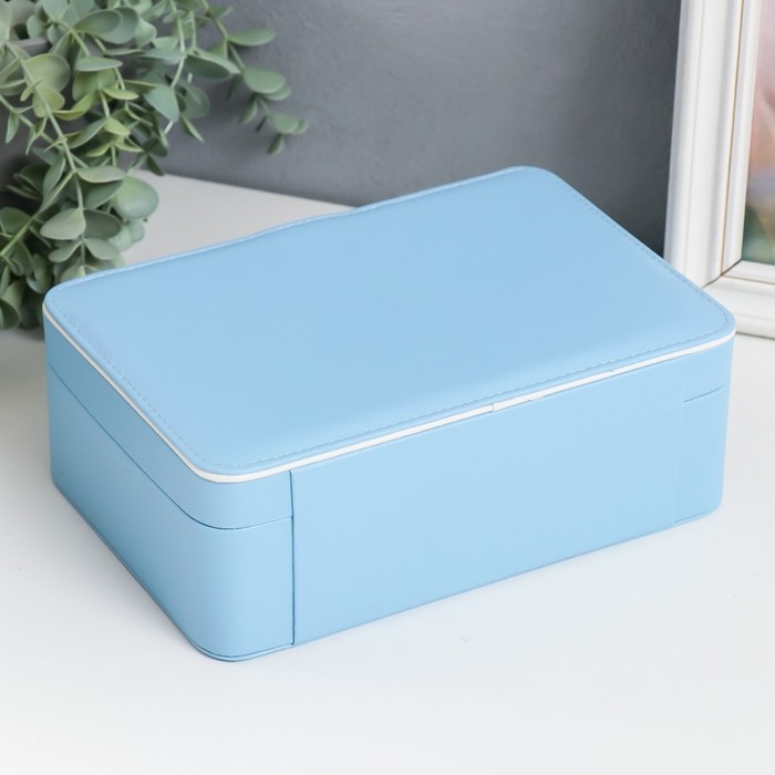 Шкатулка кожзам для украшений "С пряжкой" голубая 24х18,5х9 см