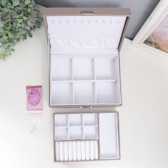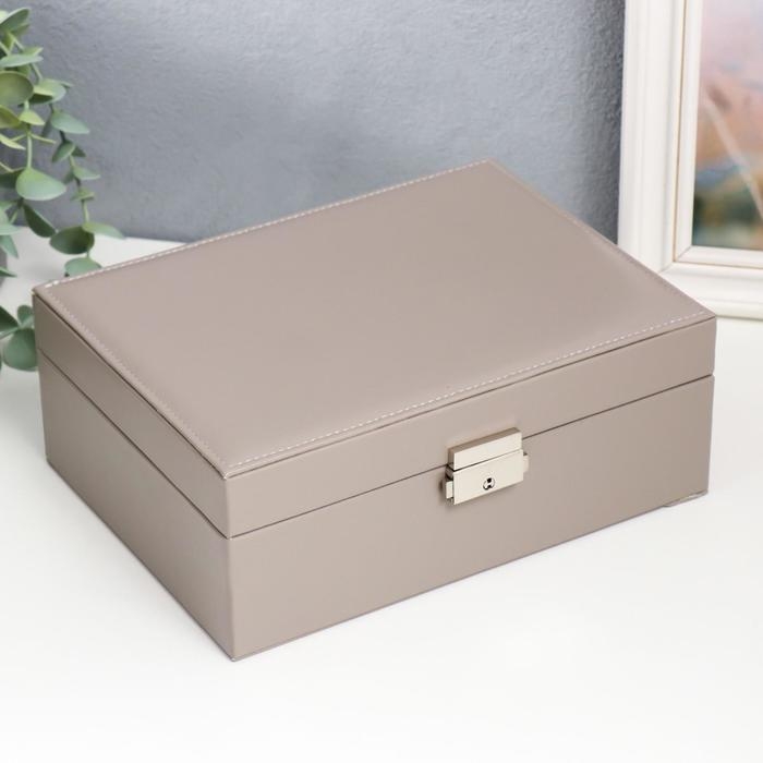 Шкатулка кожзам для украшений "Серая матовая" 9х23х17 см