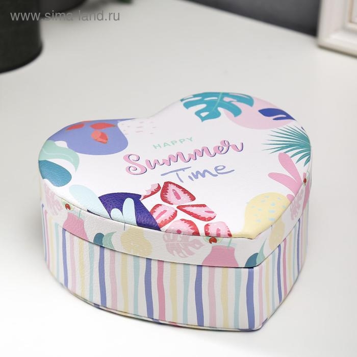 Шкатулка кожзам для украшений сердце "Лето в разгаре" 7х14х17 см