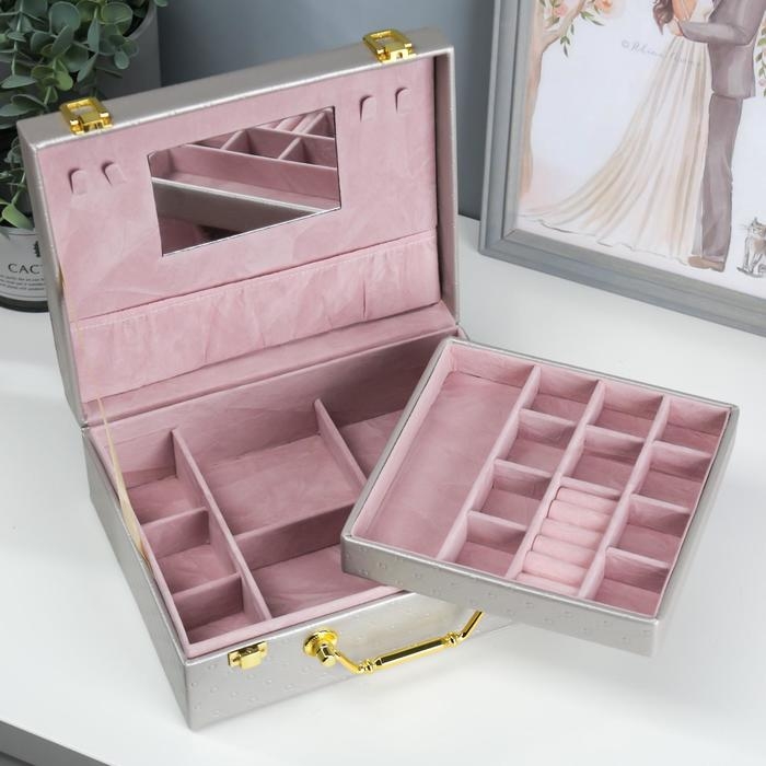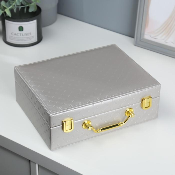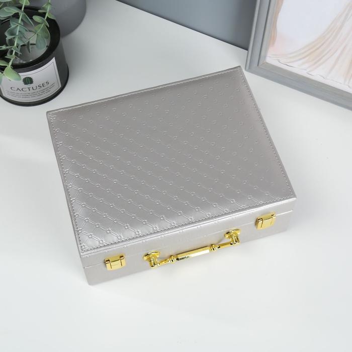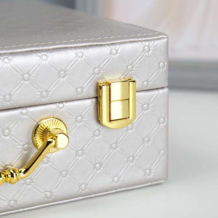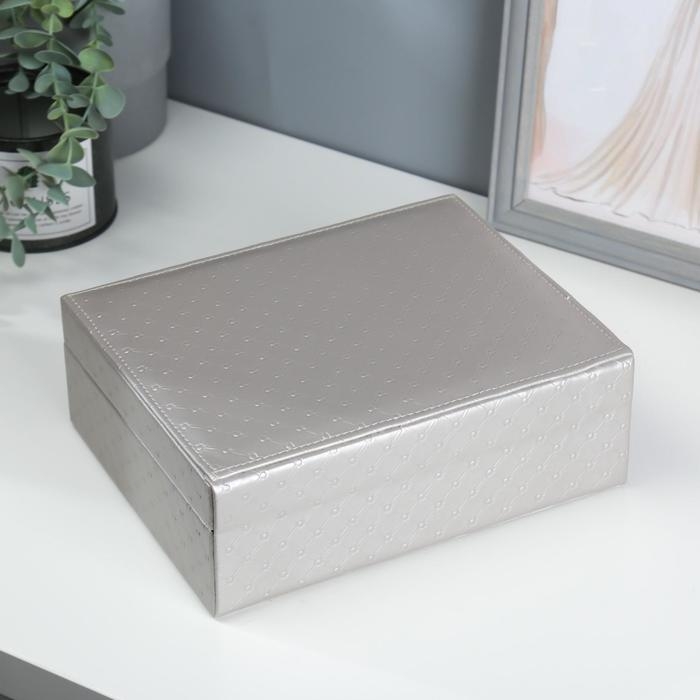 Шкатулка кожзам для украшений "Стёганная" серебро 8,5х23,5х19 см