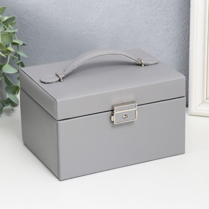 Шкатулка кожзам для украшений сундук "Гладкость. Матовый серый" 11х18х13,7 см