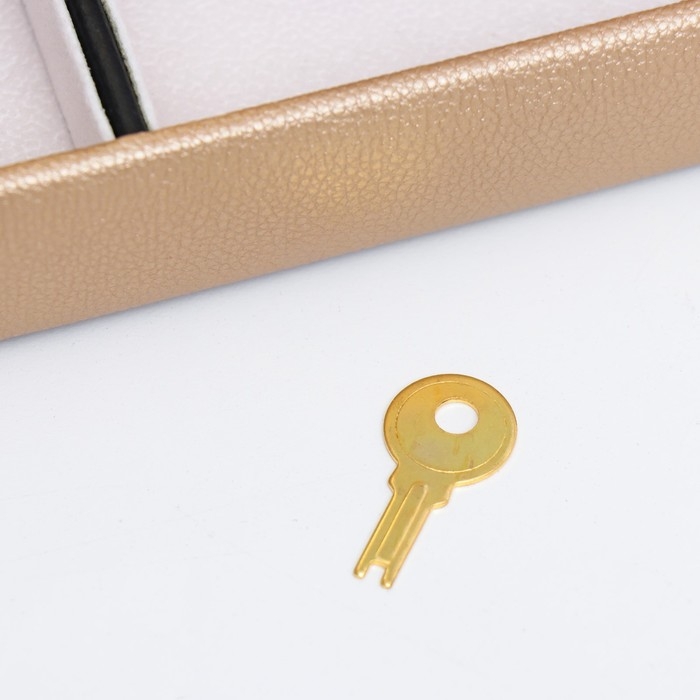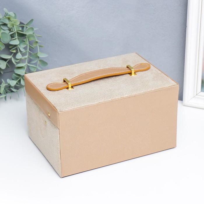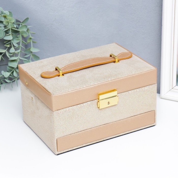 Шкатулка кожзам для украшений сундук "Мелкие квадратики. Золото" 13х16,5х23 см