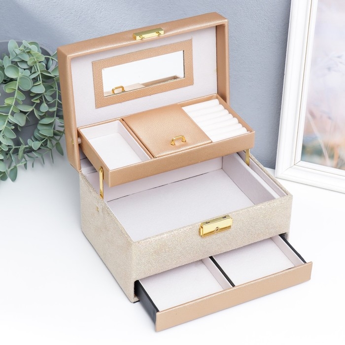 Выдвижные ящики, Для украшений, С внутренней обивкой, С делениями, С замочком, С зеркалом