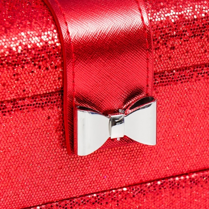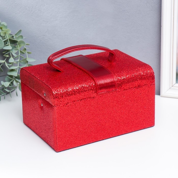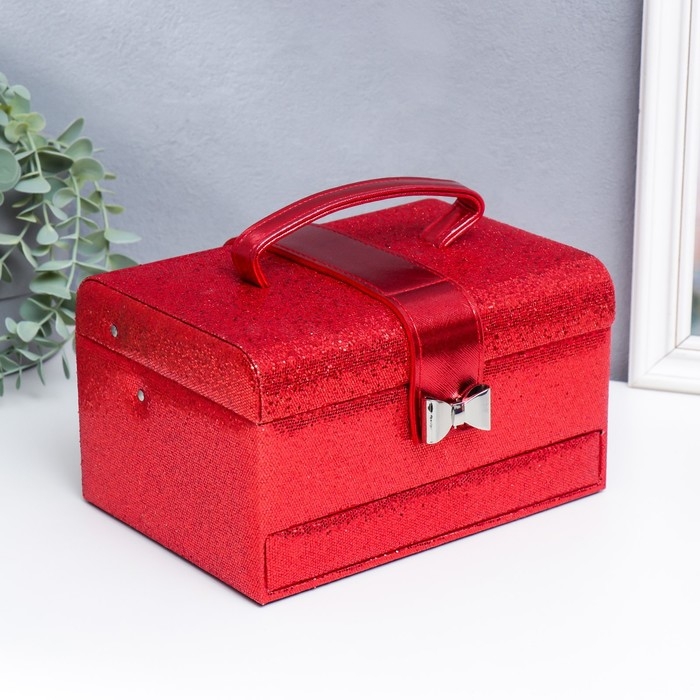 Шкатулка кожзам для украшений сундук с бантом "Мелкие квадратики. Красный" 13,5х16,5х23 см
