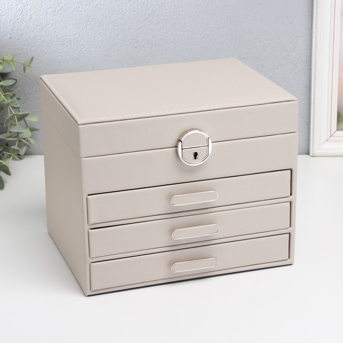 Шкатулка кожзам для украшений "Винта" бежевая22х17х18 см