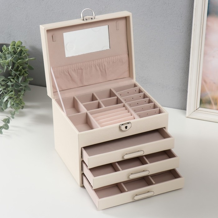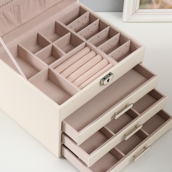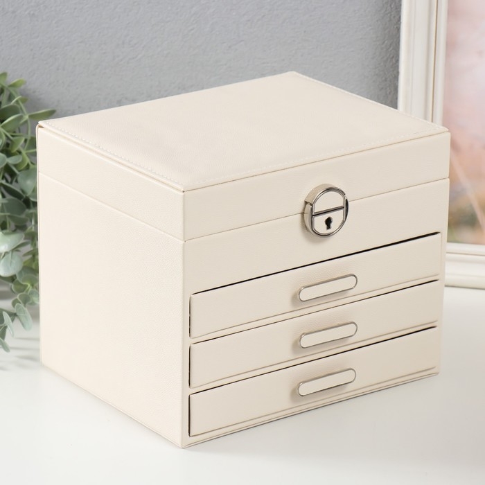 Шкатулка кожзам для украшений "Винта" молочная 22х17х18 см