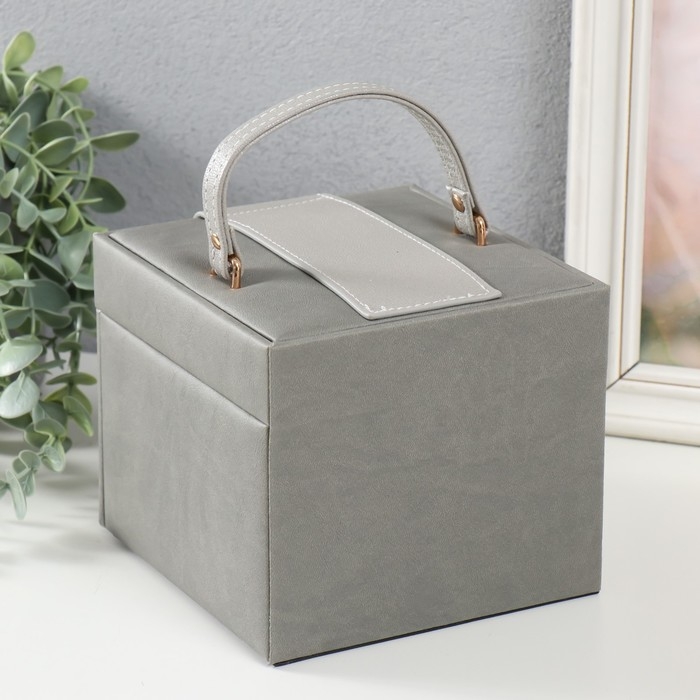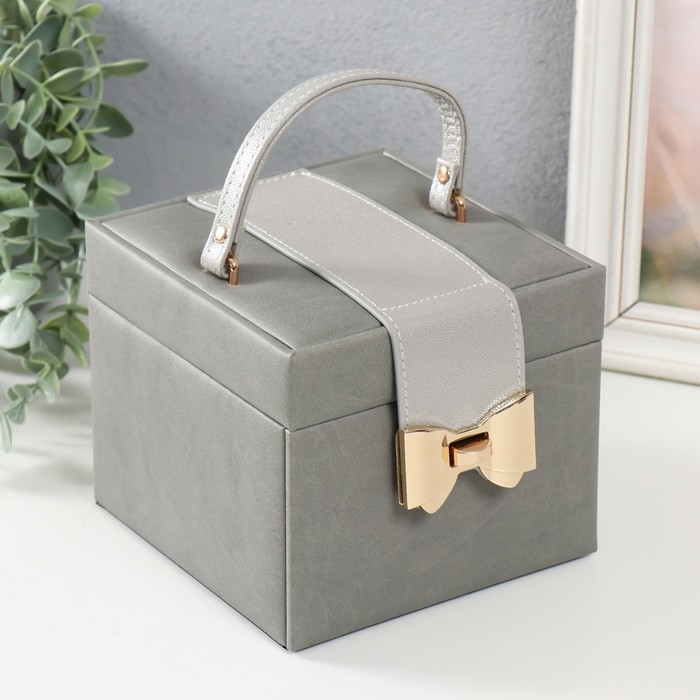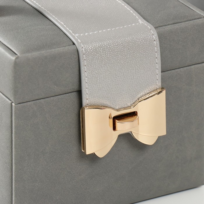Шкатулка кожзам для украшений "Золотой бантик" серая 15х15х12,7 см