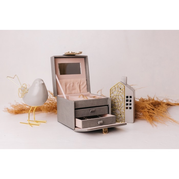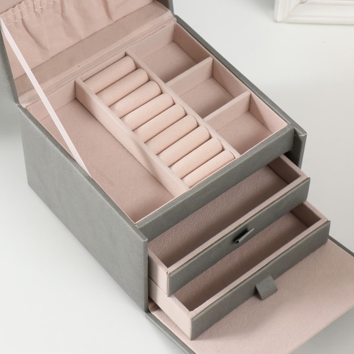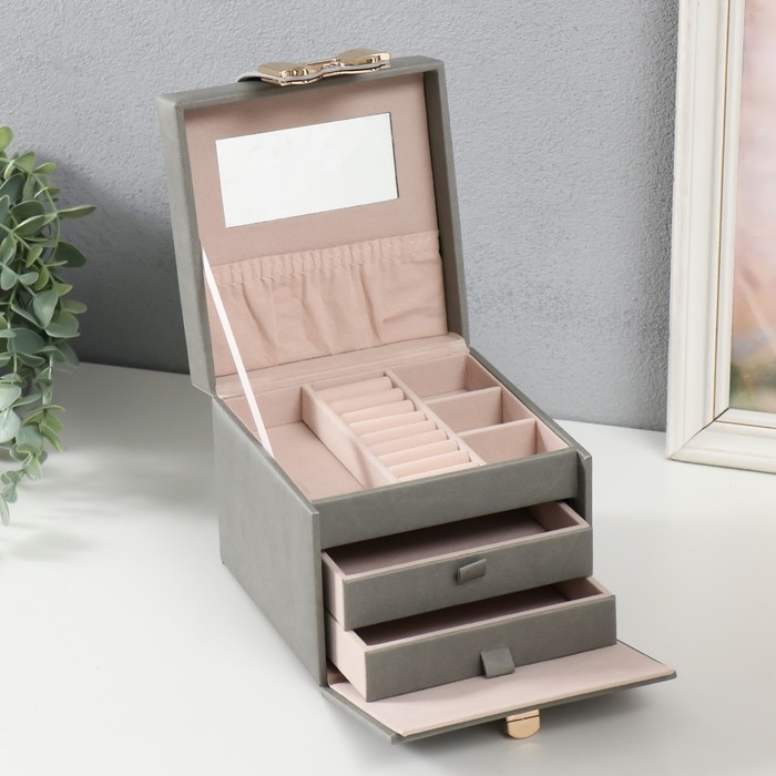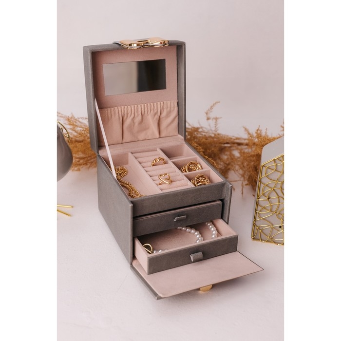 Выдвижные ящики, Для украшений, С внутренней обивкой, С делениями, С замочком, С зеркалом