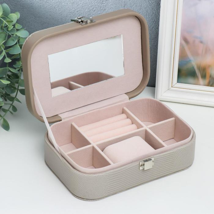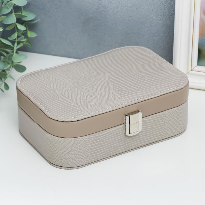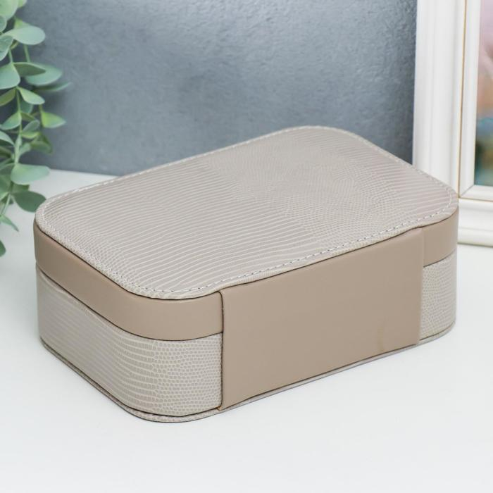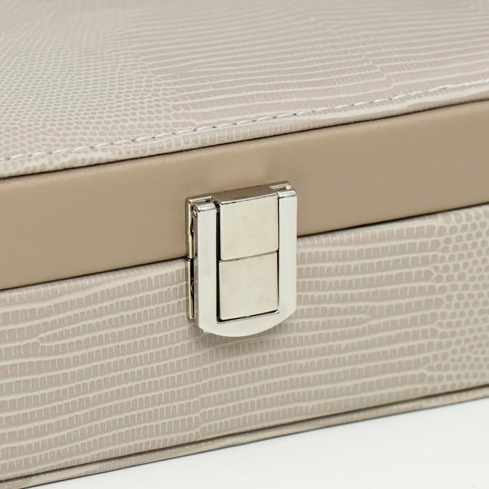 Шкатулка кожзам под часы 1 деление и бижутерию "Рептилия серая" комбинированная 7х14х20 см