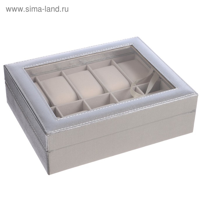 Шкатулка кожзам под часы 10 отделений "Космос. Серебро" 8х25,5х20 см